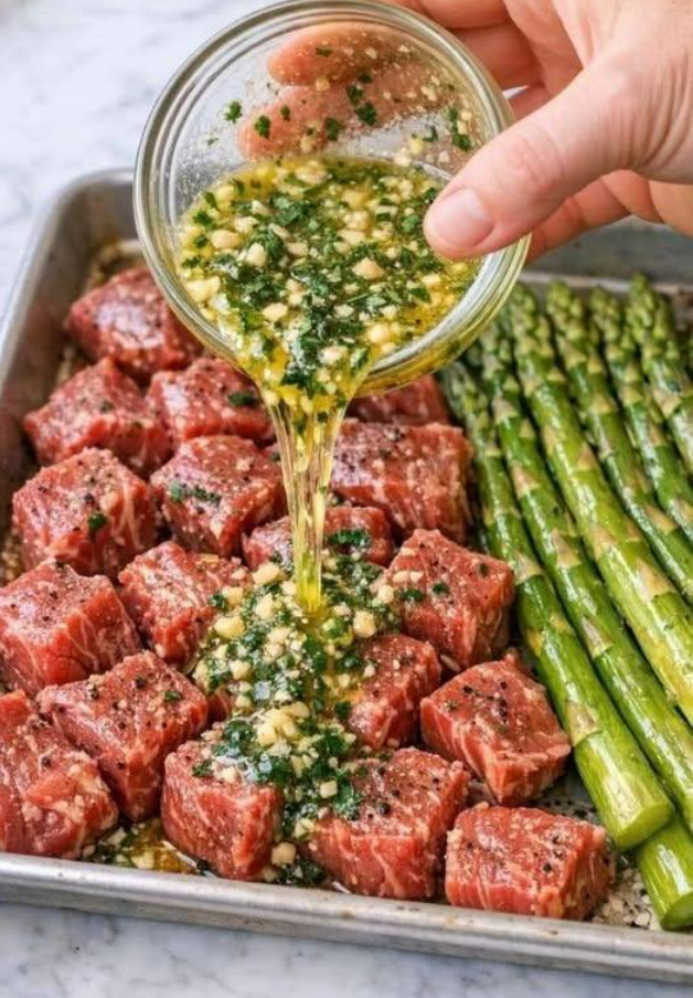 If you’re searching for an easy high-protein dinner recipe that feels like a restaurant-quality meal, these garlic butter steak bites with roasted asparagus are the perfect choice.